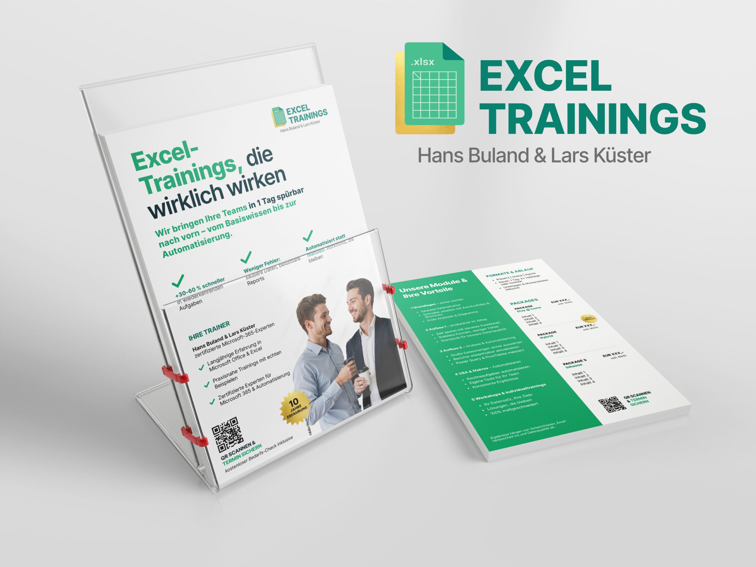 Für sein neues Excel-Schulungs-Konzept in Kooperation mit Hans Buland haben wir ein neues Logo und einen Flyer für das Angebot der beiden Trainer entwickelt.